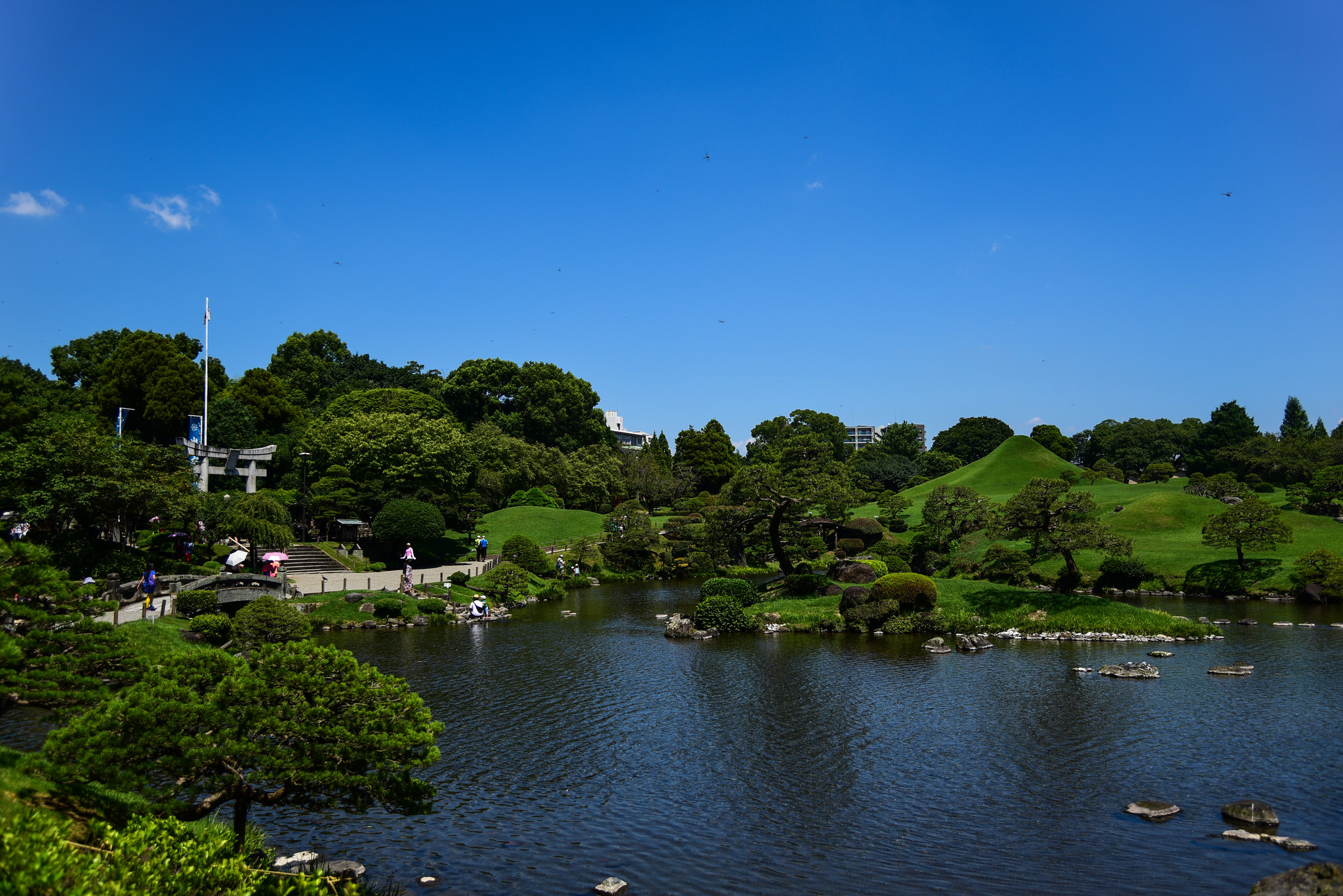 일본의 정원은 한국과 중국과는 그 형식이 다르지만, 정원에 축소된 세계나 사상을 담으며 매우 뛰어난 조경미를 자랑합니다. 구마모토를 대표하는 정원으로는 스이젠지 조주엔을 꼽는데, 정원 가운데 호수를 중심으로 한바퀴를 돌며 조경된 작은 세계를 감상하도록 만들어져 있는 정원입니다.