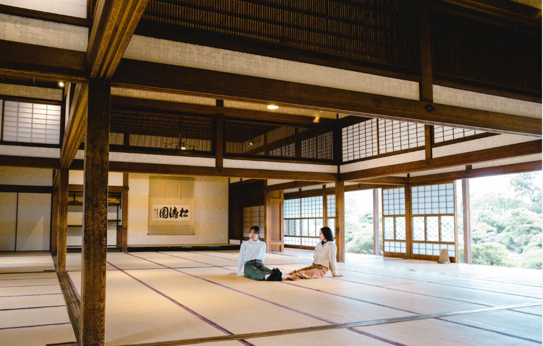 오오히로마라는 넓은 접견실에 잠시 앉아보기도 하고, 외부로 보이는 발코니에서 일본식 정원을 한번 바라보고, 또 당시 개항시대의 서양식 건물까지 돌아보며 일본 메이지 시대의 시간을 몸으로 느껴볼 수 있는 기회입니다. 예쁜 사진도 찍을 수 있으니 스마트폰 배터리 체크는 필수라는 것을 잊지 마세요.