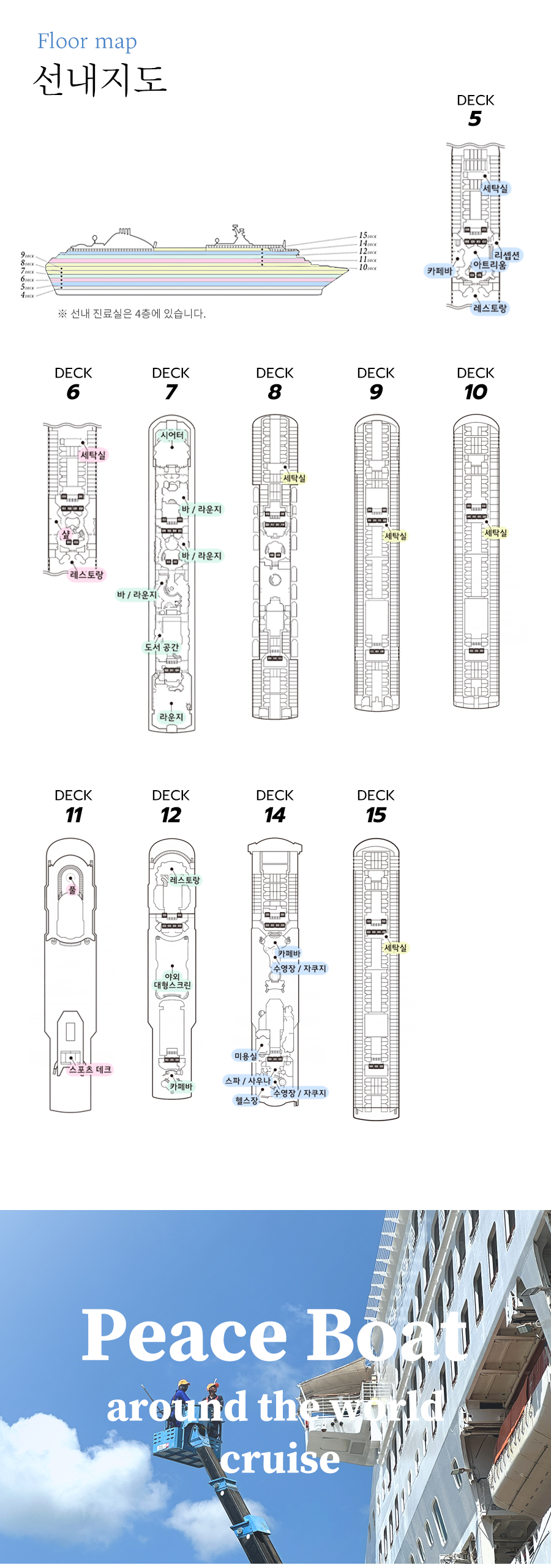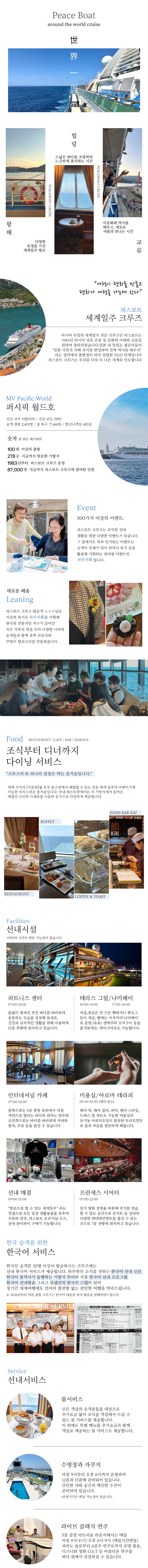 - 선내에서 실시 되는 이벤트(일부 유료) 관람 및 참석