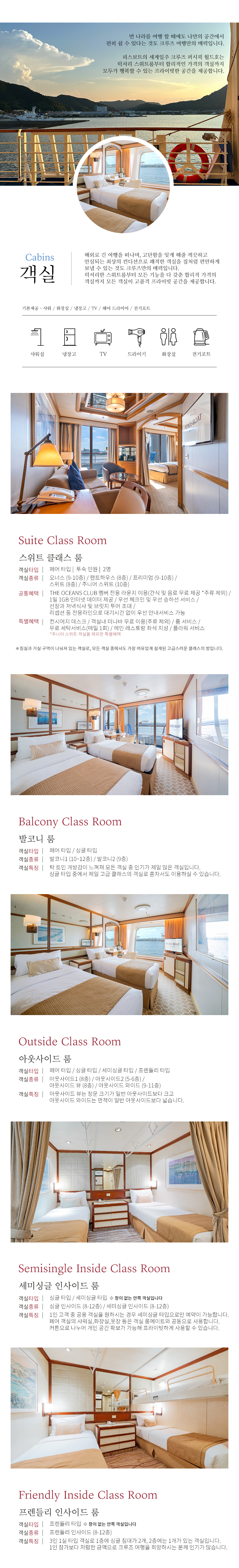 - 선내 무료 시설 이용 (농구장, 헬스장, 수영장, 자쿠지, 데크 등)